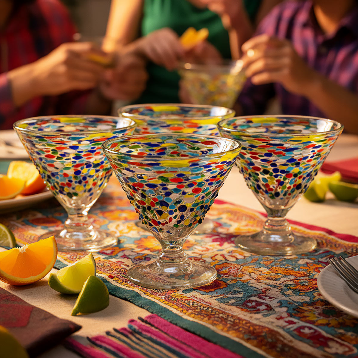 Mexican Confetti Pebbled Short Martini Glass - Set of 4