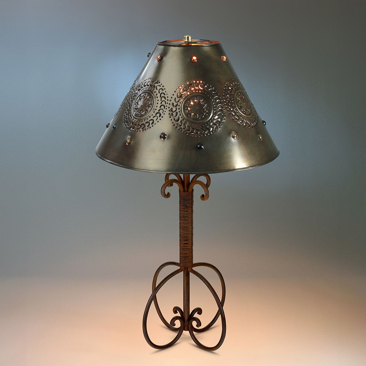 Wrapped Iron Table Lamp with Punched Tin Marble ShadeWrapped Iron Table Lamp with Punched Tin Marble ShadeWrapped Iron Table Lamp with Punched Tin Marble ShadeWrapped Iron Table Lamp with Punched Tin Marble Shade