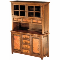 Our old wood and copper buffets, hutches and kitchen islands will provide a classic rustic decor in your dining room or kitchen. The warmth and beauty of our unique rustic iron, old wood and copper dining room furniture is accentuated by the creative use of copper panels, hammered copper tops and rustic iron hardware. These hutches and buffets are authentic Mexican creations handmade with care in Mexico.