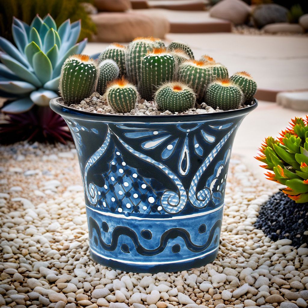 This handpainted blue & white Talavera flower pot will add a splash of color and Mexican flair to your garden, patio or any room in your home. Talavera pottery is handmade and handpainted by Mexico's talented potters.