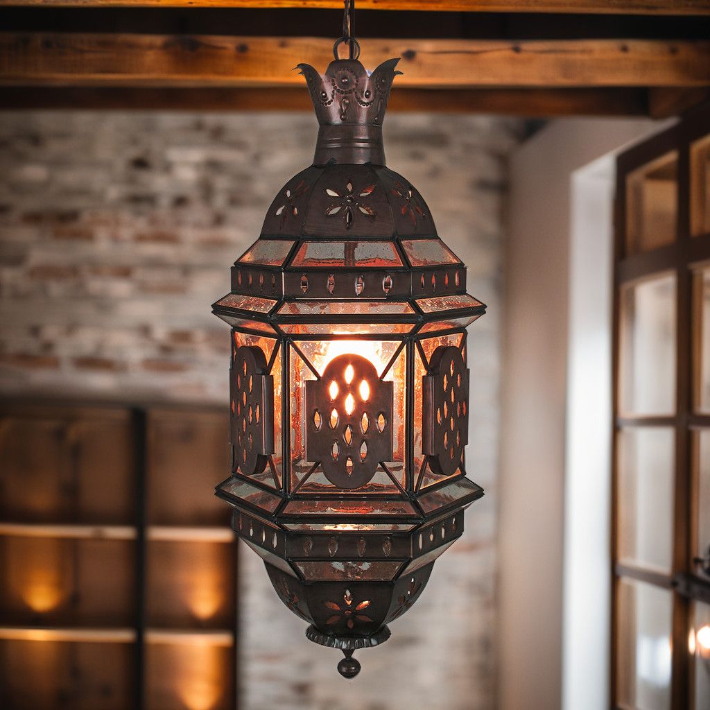 This rustic tin and glass hanging light will add a rustic antique charm to your home decor. This beautiful Mexican light fixture is handmade by talented artisans in Mexico.