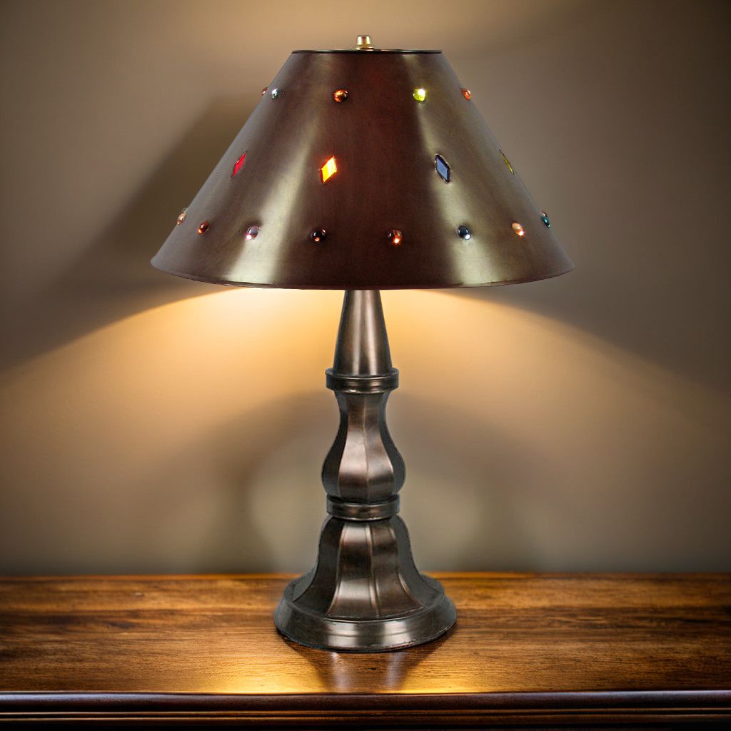 The perfect rustic lamp for your a coffee table, hall table or nightstand. Our rustic metal lamps will illuminate any southwest or rustic decor in your home or cabin. The aged tin lamp bases and shades are individually hand crafted by the talented tinsmiths of Mexico.