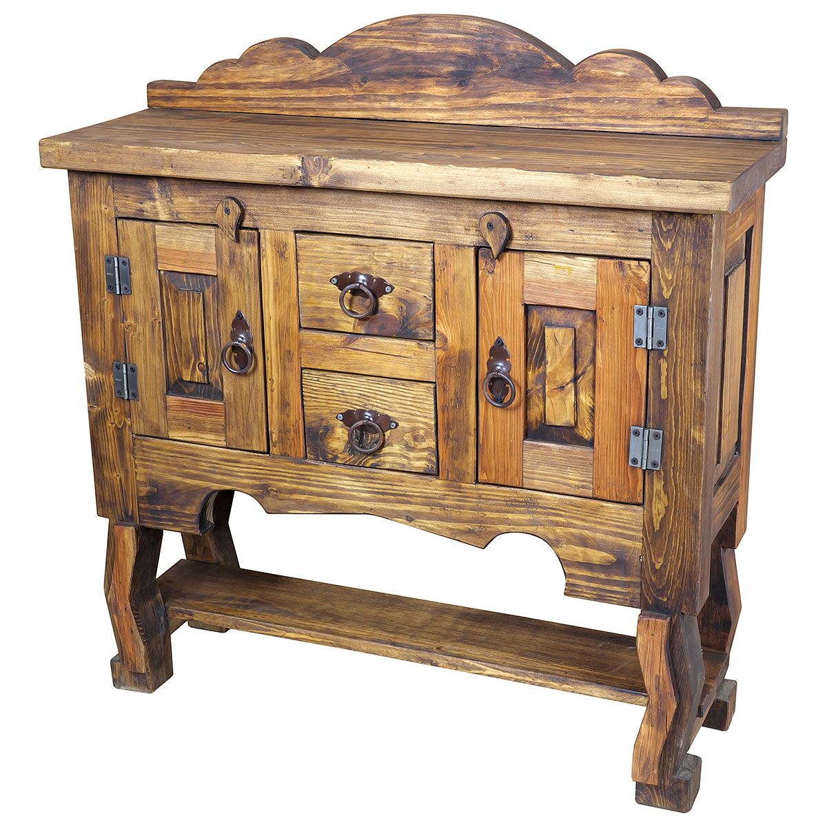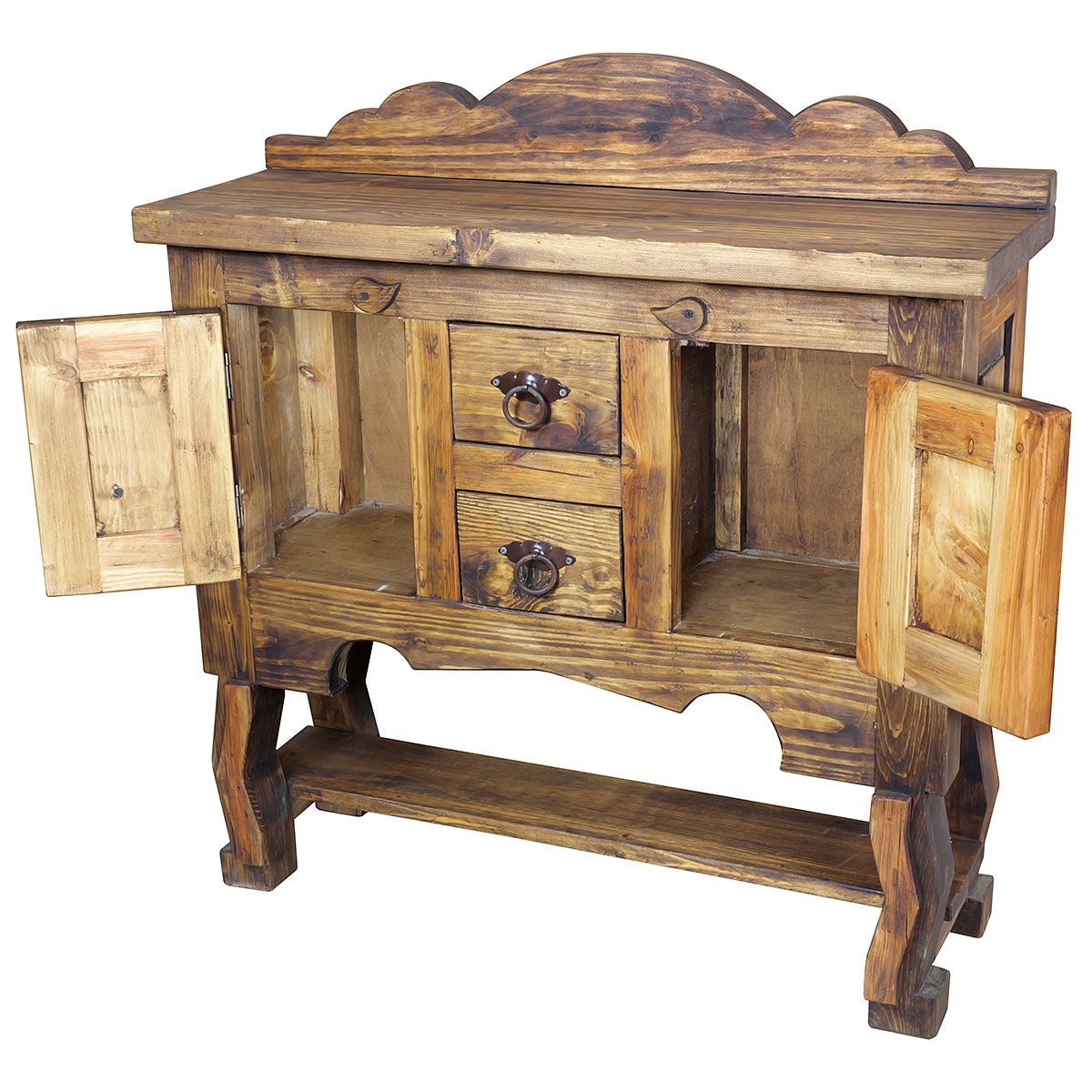 Every piece is individually built and finished by hand, ensuring natural variations in color, grain, and distressing that make each one unique. Free shipping is included in the continental U.S., making this compact console a perfect addition to any rustic, Spanish Colonial, or farmhouse-style home.