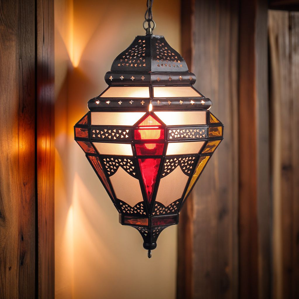 Tin Moroccan Pendant Light with Frosted and Multi-Colored GlassTin Moroccan Pendant Light with Frosted and Multi-Colored GlassTin Moroccan Pendant Light with Frosted and Multi-Colored GlassTin Moroccan Pendant Light with Frosted and Multi-Colored Glass