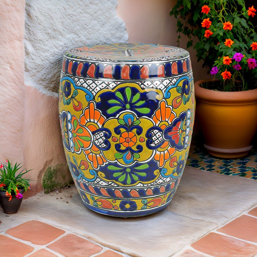 Our Talavera garden stools will add a colorful Mexican accent to your garden or patio. Each Talavera stool is hand crafted and hand painted by potters in Mexico.