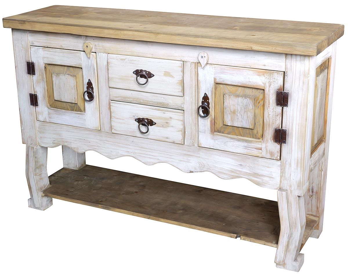 Brighten your home with the timeless beauty of our whitewashed rustic pine sideboard, a stunning piece of authentic handcrafted Mexican furniture. Expertly made from solid kiln-dried pine wood, this sideboard showcases a soft whitewashed finish that highlights the wood’s natural grain, giving it a warm, rustic appeal. Featuring two cabinet doors and two spacious drawers, it provides versatile storage for dining essentials, tableware, or home décor items. The open lower shelf offers additional space for baskets, dishes, or decorative accents.
