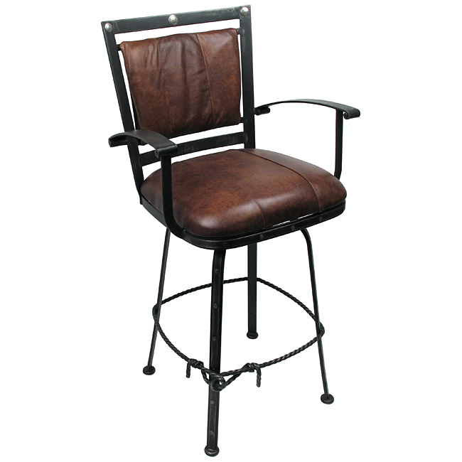Set of 2 Lariat Wrought Iron Bar Stools - Leather Padded Swivel SeatSet of 2 Lariat Wrought Iron Bar Stools - Leather Padded Swivel SeatSet of 2 Lariat Wrought Iron Bar Stools - Leather Padded Swivel SeatSet of 2 Lariat Wrought Iron Bar Stools - Leather Padded Swivel Seat